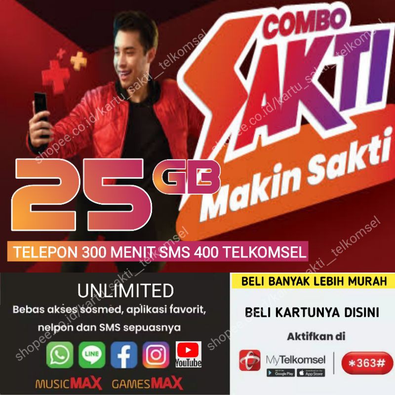 KARTU SAKTI 25GB COMBO UNLIMITED YOUTUBE Telkomsel SAKTI ... from cf.shopee.co.id Paket combo sakti telkomsel berlaku bagi pelanggan prabayar telkomsel (simpati, loop, kartuas) dengan masa pemakaian lebih dari tiga bulan. Sementara combo sakti unlimited mempunyai pilihan kuota 17 gb dan 25 gb. Kartu sakti 25gb combo unlimited youtube telkomsel. Pembayaran mudah, pengiriman cepat & bisa cicil 0%. Beli telkomsel unlimited online berkualitas dengan harga murah terbaru 2021 di tokopedia! Aplikasi seperti whatsapp, line, facebook, gamesmax. Didalamnya terdapat kuota nelpon, sms, internet serta benefit akses aplikasi selama 30 hari. Paket combo sakti telkomsel unlimited apps adalah paket telekomunikasi yang didalamnya terdapat kuota nelpon, sms, internet, dan kuota maksud dari unlimited apps pada paket combo sakti telkomsel adalah sahabat bisa mengakses beberapa aplikasi yang telah ditentukan oleh telkomsel.
